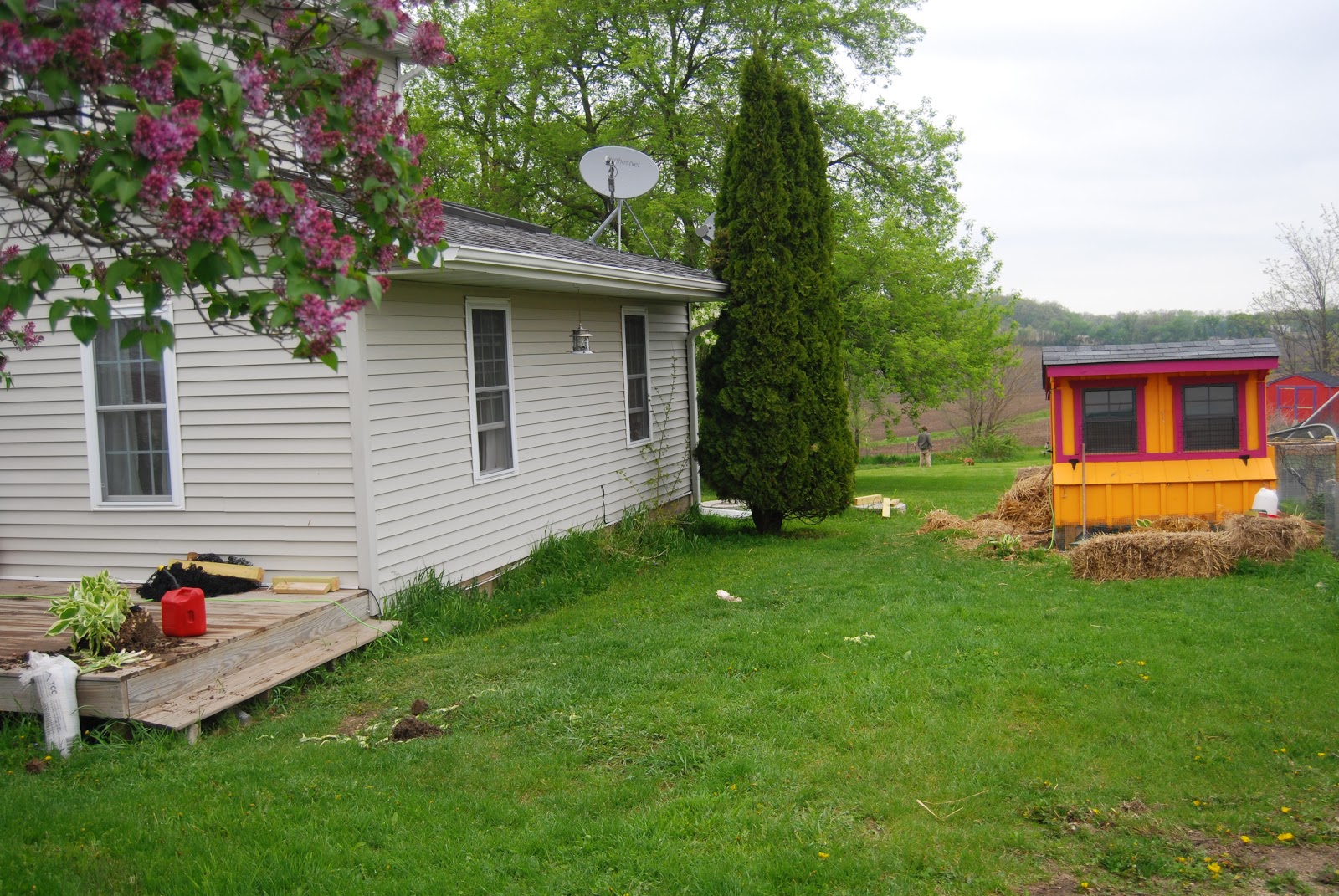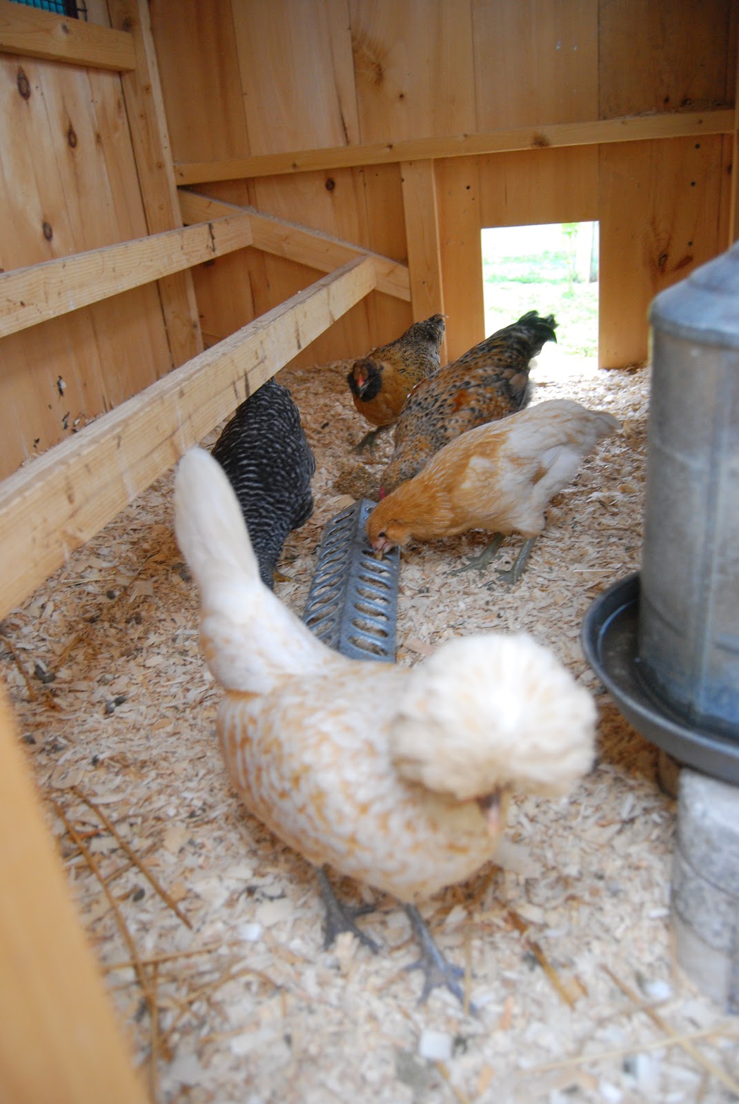 Nope. The chickies have adapted quite well to their orange and pink coop, and they seem to love their new dormies too.